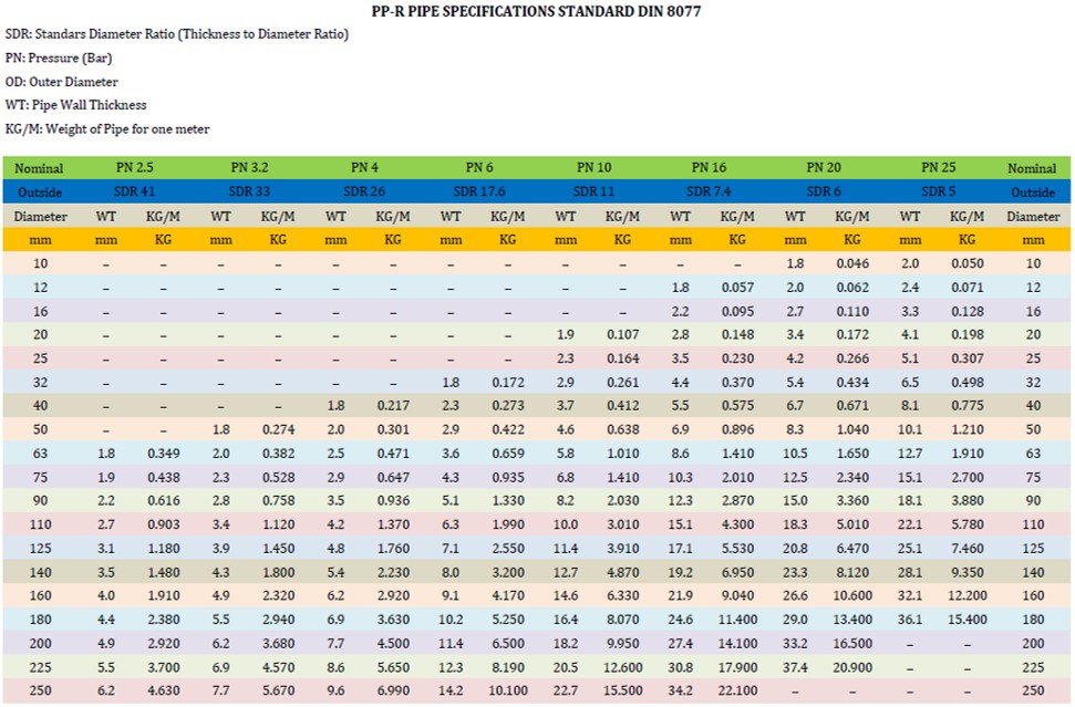 - Produce Polypropylene pipe in different pressures up to 20 bars or any pressure specify by project.